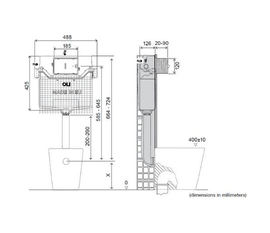 Réservoir de chasse d'eau double encastré à commande mécanique directe OLI120 PLUS