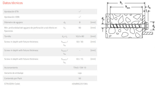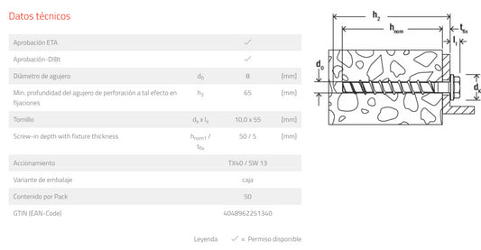 Bidon de 50 unités Bouchon à béton PROfix FSL M6x45 D8 Fischer