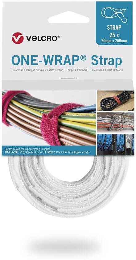 Attaches de câble réutilisables en blister 25 unités ONE-WRAP Velcro 20 mm x 200 mm