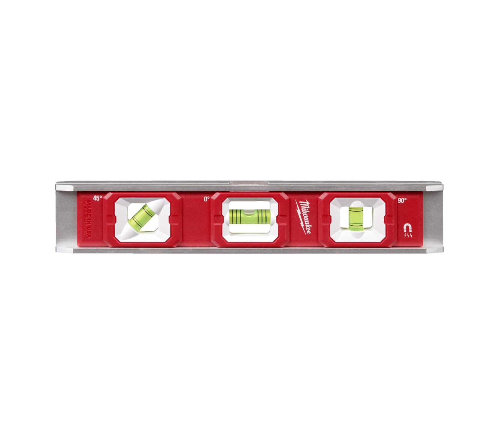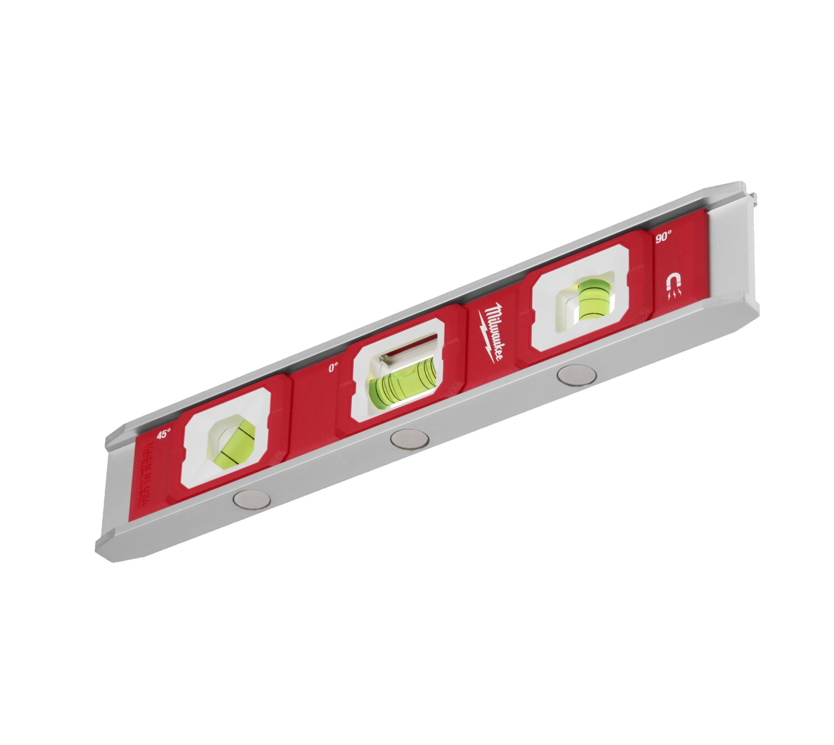 • Nivel torpedo con 3 viales Milwaukee ref.4932498716 – Nivel compacto con tres viales para nivel, plomada y ángulos de trabajo.