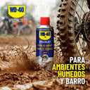 - Pulveriza WD-40 Specialist Moto Grasa de Cadenas Ambiente Húmedo sobre la cadena limpia.