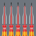 • Aislamiento VDE: Cada herramienta está probada individualmente según la norma IEC 60900, garantizando seguridad en trabajos con tensiones de hasta 1000 V.