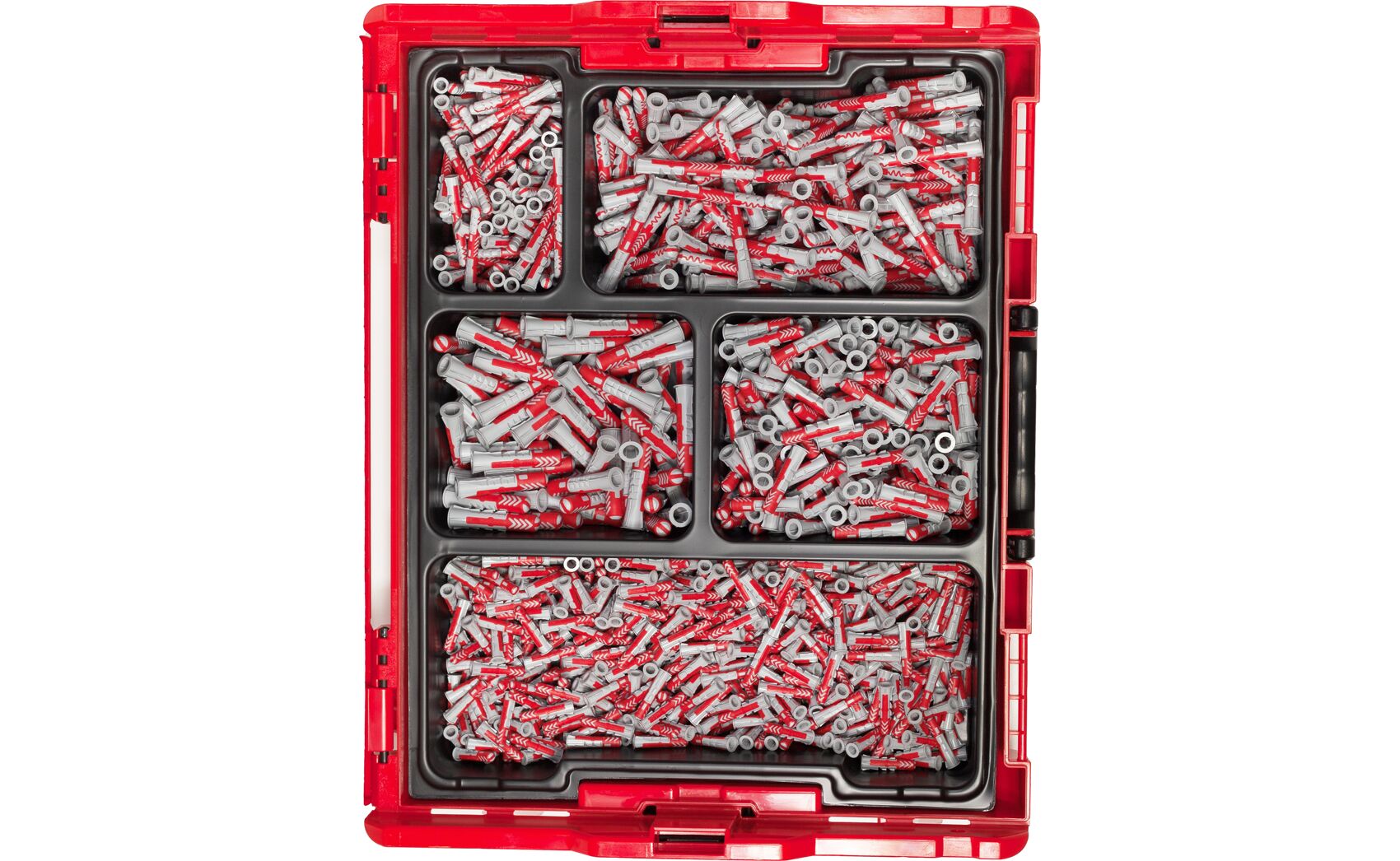 La L-BOXX DuoPower es la solución profesional definitiva para el almacenamiento y transporte de fijaciones. Este robusto maletín contiene un surtido de 910 tacos DuoPower en sus medidas más utilizadas. Gracias a su sistema de clic, la caja es totalmente compatible con el sistema L-BOXX de Bosch, facilitando su transporte e integración en estanterías de vehículos comerciales.