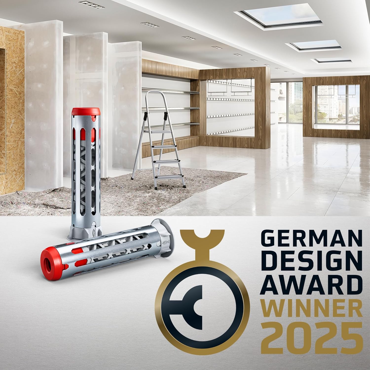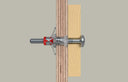 - Installation simple : avec vis TX pour un montage rapide et fiable. Lors du pré-montage, le manchon métallique est replié derrière le matériau de construction et pressé contre l'arrière de la plaque, tandis que la cheville en plastique s'enfonce dans le matériau. L'assemblage est rapide et facile à l'aide d'une visseuse sans fil, réduisant le temps de montage jusqu'à 50 % par rapport aux chevilles classiques.