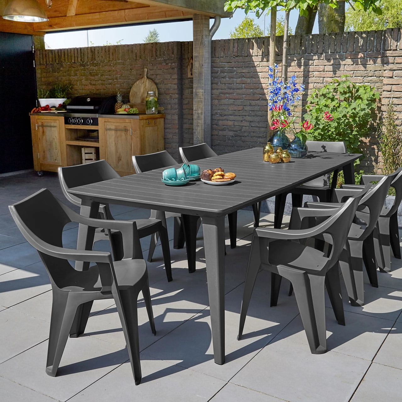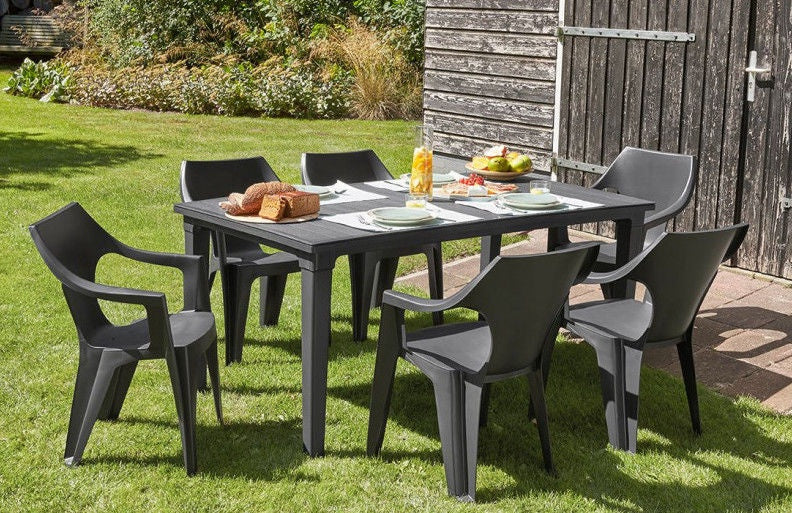 - Polyvalent et combinable : Son design graphite neutre s'adapte facilement à tout type de table d'extérieur ou de mobilier de jardin.