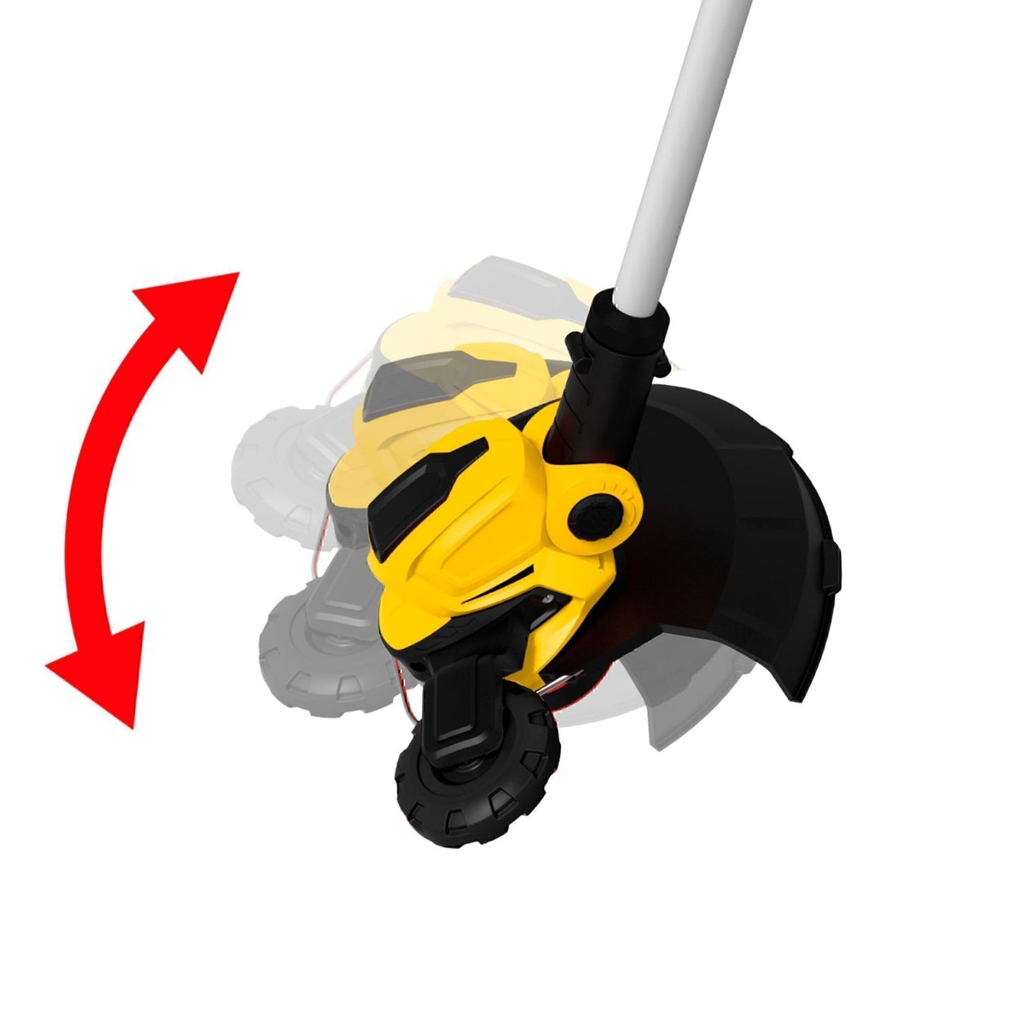 Il a une fonction de profilage grâce à sa tête rotative à 180º et sa roue de support. Son protecteur évite d'endommager le tronc de l'arbre lors du profilage.