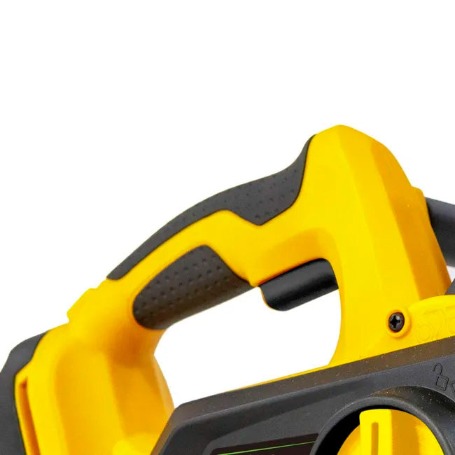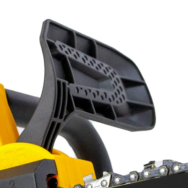 - Comprend un interrupteur de sécurité et un frein de chaîne électrique (en débranchant le moteur). Sa poignée ergonomique et la position de la batterie en font une machine totalement équilibrée, y compris pour les tâches d'élagage.