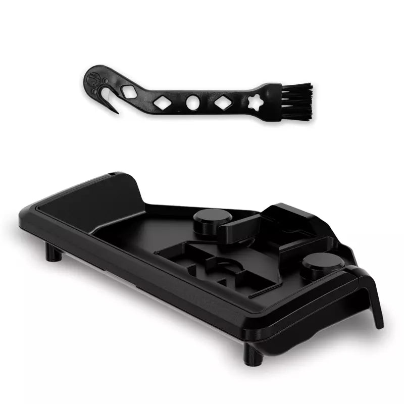 Dans la station de stationnement/de nettoyage, le nettoyant pour sols durs peut non seulement être stocké de manière optimale, mais aussi nettoyé. En appuyant sur un bouton, le rouleau tourne pendant 30 secondes avec une grande quantité d'eau. Les nervures de nettoyage au bas de la station nettoient le rouleau.