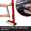 L'alimentation en eau du réservoir d'eau douce de 400 ml humidifie la brosse pour nettoyer les sols. L'eau est à nouveau absorbée grâce à un mécanisme spécial et collectée dans le réservoir d'eau sale (300 ml). Les deux réservoirs peuvent être complètement retirés de l'équipement pour le remplissage, la vidange et le nettoyage.