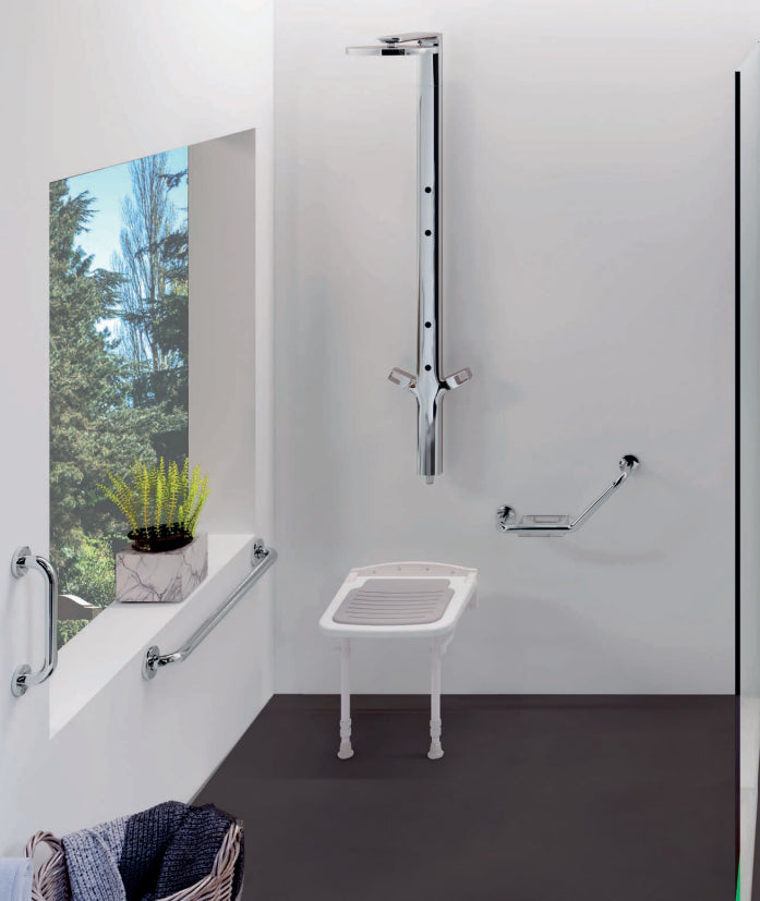 Poignée pour faciliter les tâches de salle de bain telles que se lever, s'asseoir ou simplement pour plus de stabilité lors du déshabillage. Grâce à la gravure dont il dispose, elle lui confère une friction pour permettre une prise sûre.