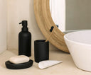Porte-brosses à dents de salle de bain au design minimaliste et élégant, en polyrésine noire mate , idéal pour ranger avec style vos brosses à dents et accessoires d'hygiène sur n'importe quel lavabo ou plan de travail.