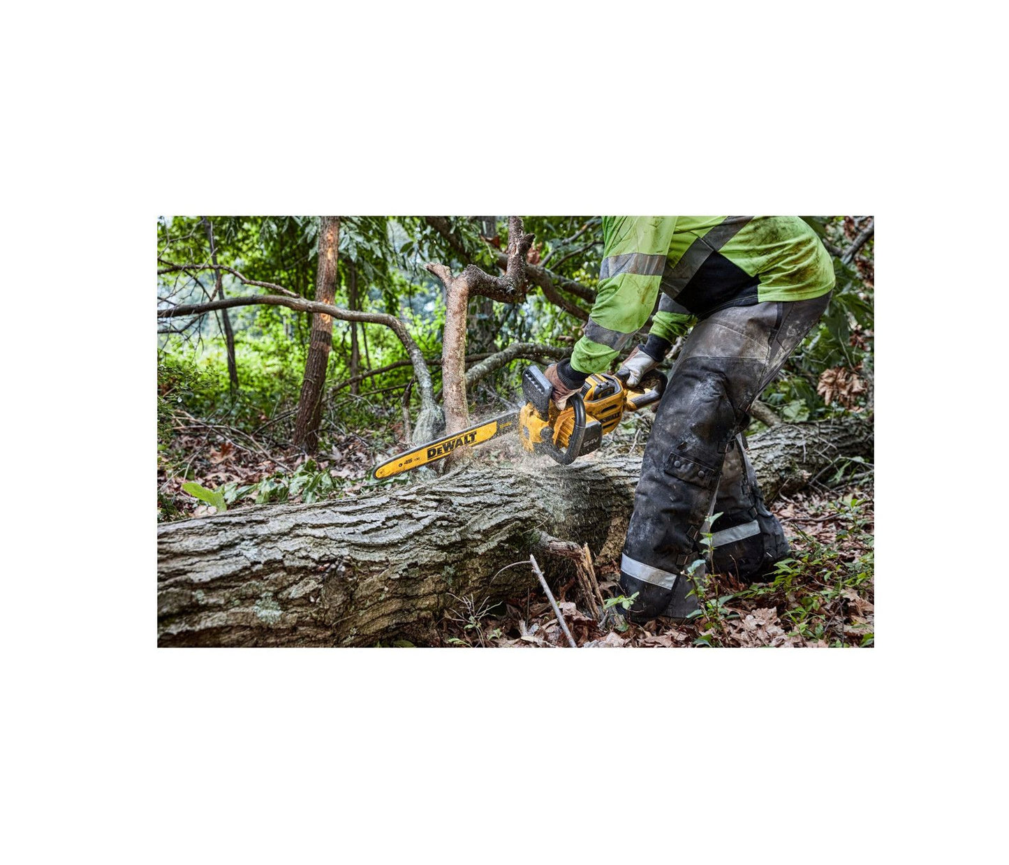 Tronçonneuse Flexvolt de 45 cm avec moteur brushless. Il a une vitesse de chaîne de 13,5 m/s. Il sera toujours prêt à l'emploi grâce à sa lubrification automatique, sa tension de chaîne variable et sa poignée ergonomique pour un plus grand confort. Il a une puissance maximale de 2000 W avec une autonomie allant jusqu'à 115 coupes 15x15.